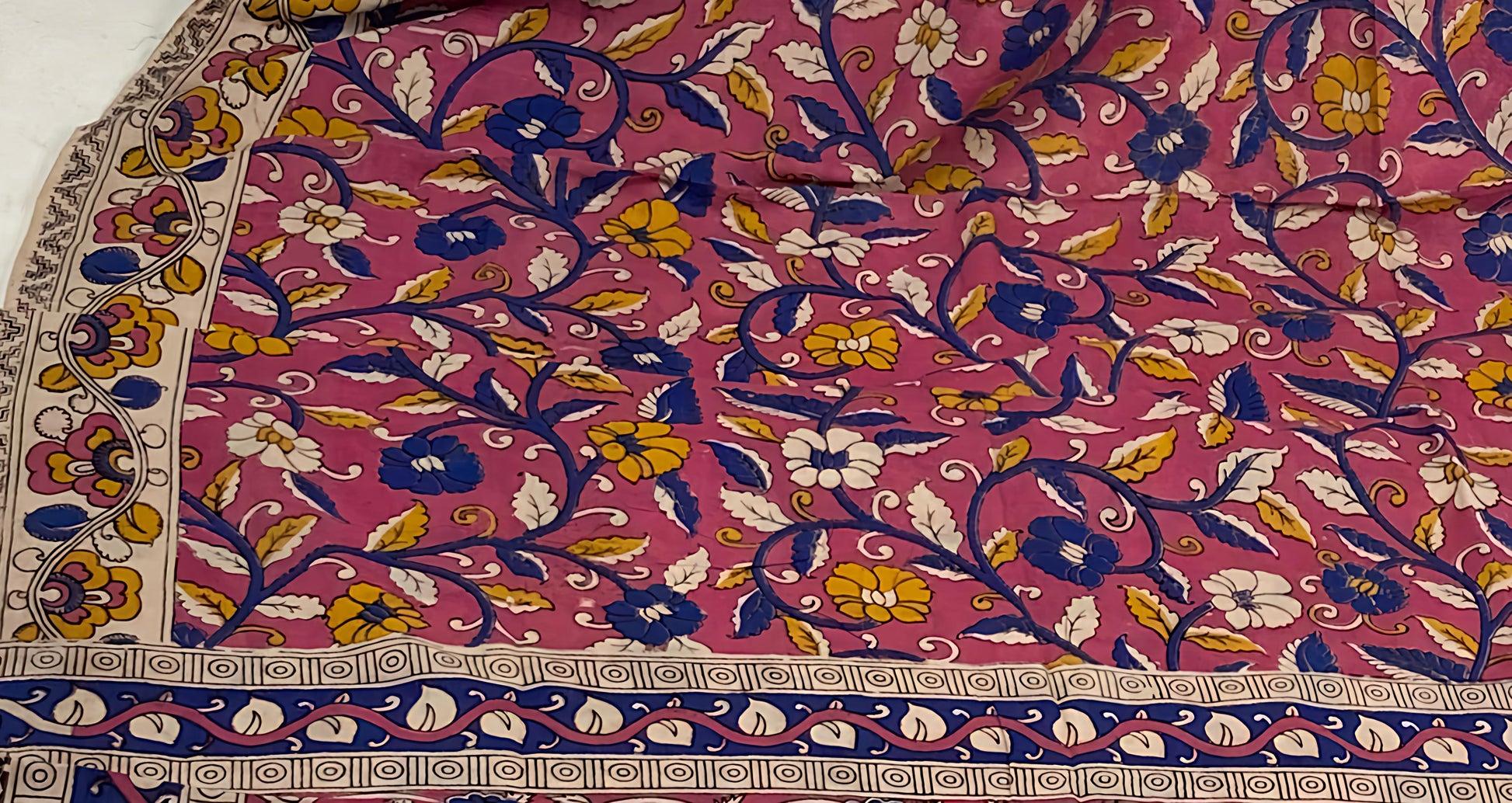 Pure Malmal Cotton - Kalamkari Floral Petalwings